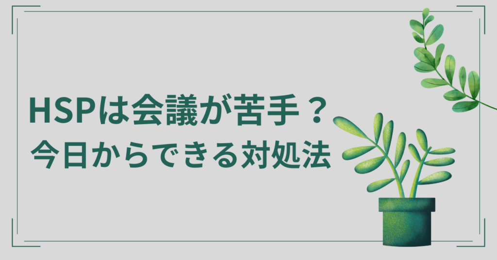 仕事×HSP HSPで会議が苦手…その理由と対処法|緊張しやすいあなたがラクになるコツ HSPで会議が苦手…と感じていませんか?他人の気持ちを読みすぎてしまう、突然の発言に緊張してしまうなど、HSPならではの理由と具体的な対処法を解説。自分を責めずに会議と向き合うヒントをお届けします。 2026.02.26 仕事×HSP